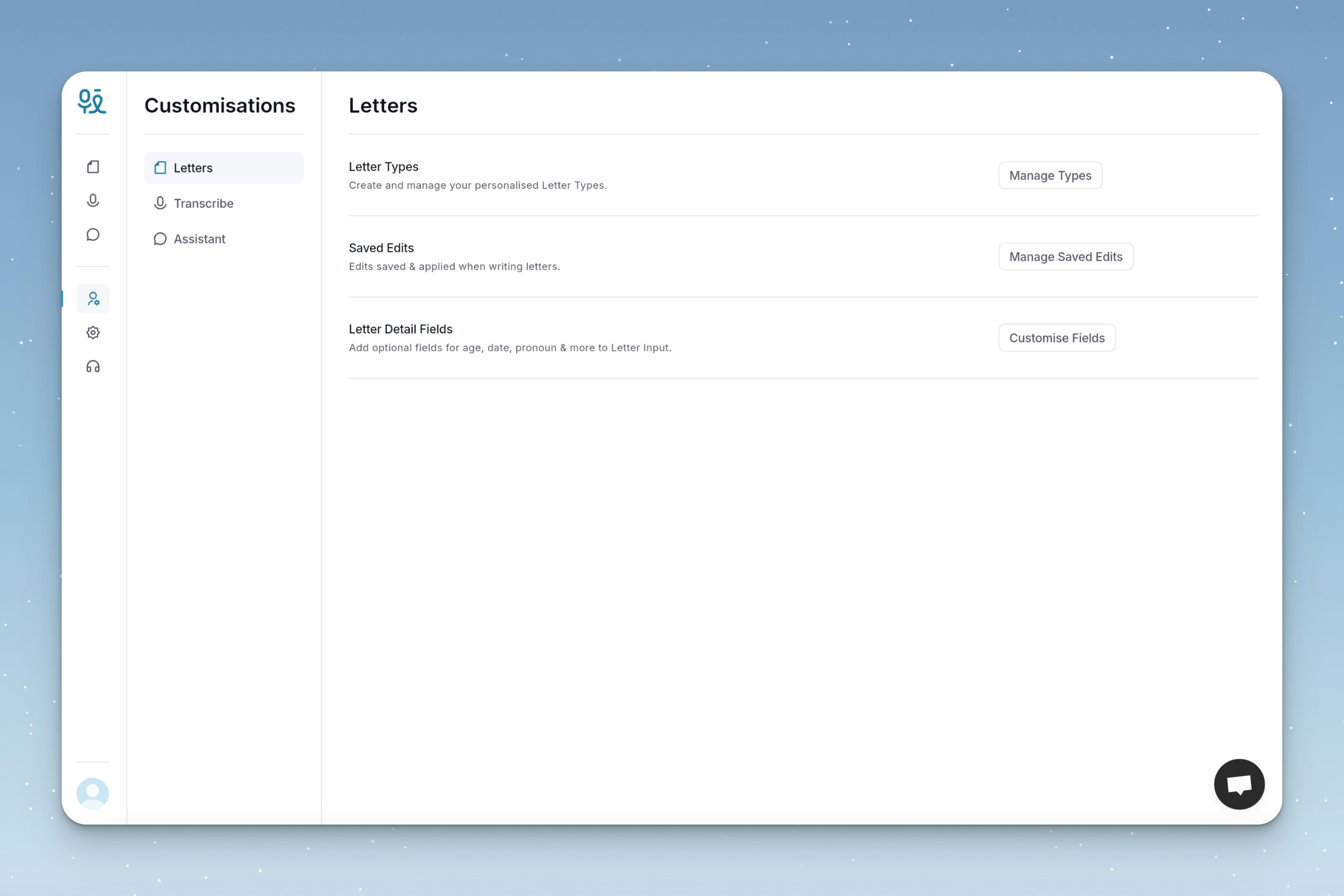 Customisation allows you to tailor aspects of your workflow, such as letter templates, transcription accuracy, and Assistant functionalities. Here’s how you can customise different areas: