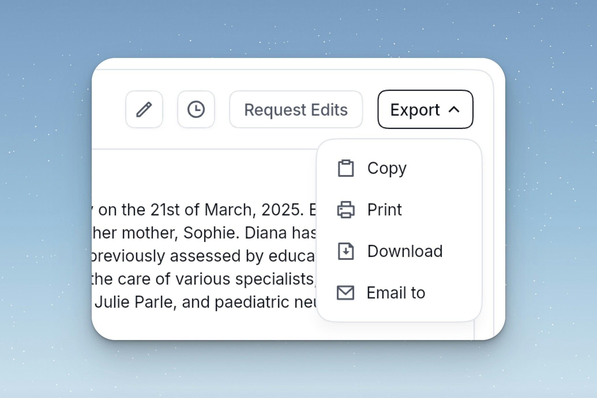 Letters is designed for easy and seamless transfer of your notes into any medical record system.Step-by-Step Guide: